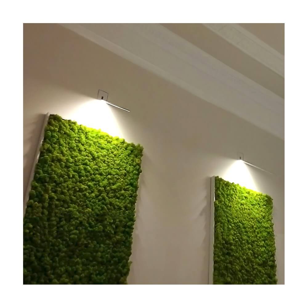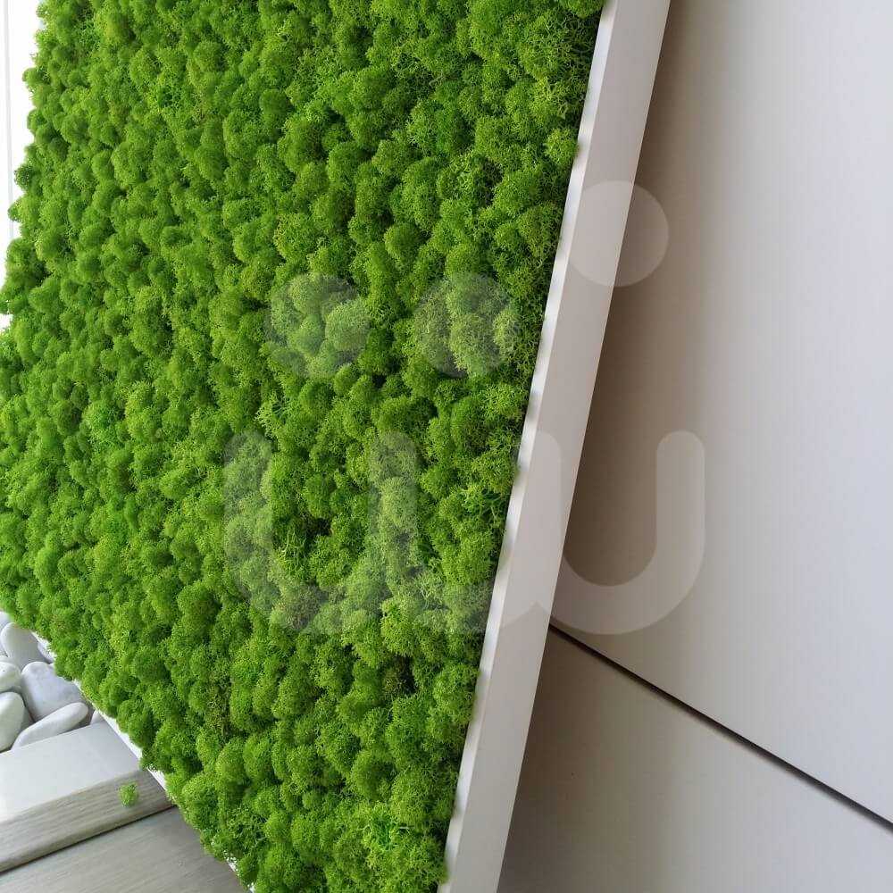 El musgo es tratado para que permanezca suave y natural, cuando la humedad es inferior al 40% el musgo puede volverse menos flexible recuperando su flexibilidad en el momento que recupera la humedad. No requiere mantenimiento, ni agua.